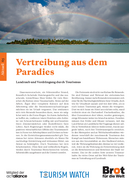 Immer wieder wird der Tourismus als Motor für nachhaltige Entwicklung und wirksames Mittel zur Armutsbekämpfung gepriesen. Sein enormer Land- und Ressourcenverbrauch wird jedoch viel zu selten berücksichtigt. Dabei bedroht er die Rechte der lokalen Bevölkerung auf ihr Land und ihren Zugang zu überlebenswichtigen Ressourcen wie Wasser, Forst- oder Weideland. Die Publikation gibt einen Überblick über beteiligte Akteure, Triebkräfte und Auswirkungen von Landraub und Verdrängung durch Tourismus.